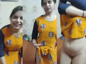 Indian woman takes off her lingerie to reveal her tight body