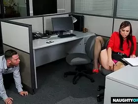 A seductive nylon-clad woman gets hung on the fest in a stake office