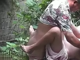 Father fucks his stepdaughter outdoors in the garden