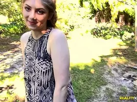 Geordie, a teenage pornstar, gets her tight asshole stretched outdoors by Alexis Fox