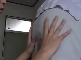 Mom with a big ass and big tits in a dress fucks her son in the laundry room
