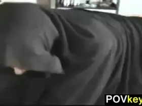 Young Muslim woman gives a blow job to a college man and gets cum inside her mouth.