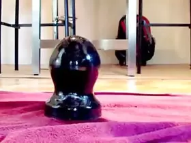 A sexy young girl gets her tight shaved pussy stretched on a bondage stand