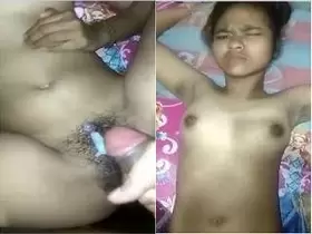 Super Hot Look Desi Gf jerks off her pussy with her fingers and tight shaved pussy that's being fucked hard by her lover