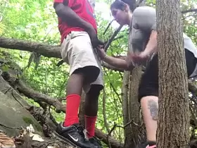 Black Guy Gets a Blowjob from White Girl in the Woods