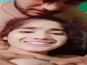 Girlfriend white boobs massaged by boyfriend