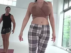 Wild 4some with 2 yoga instructors and 2 hot ripped pants girls